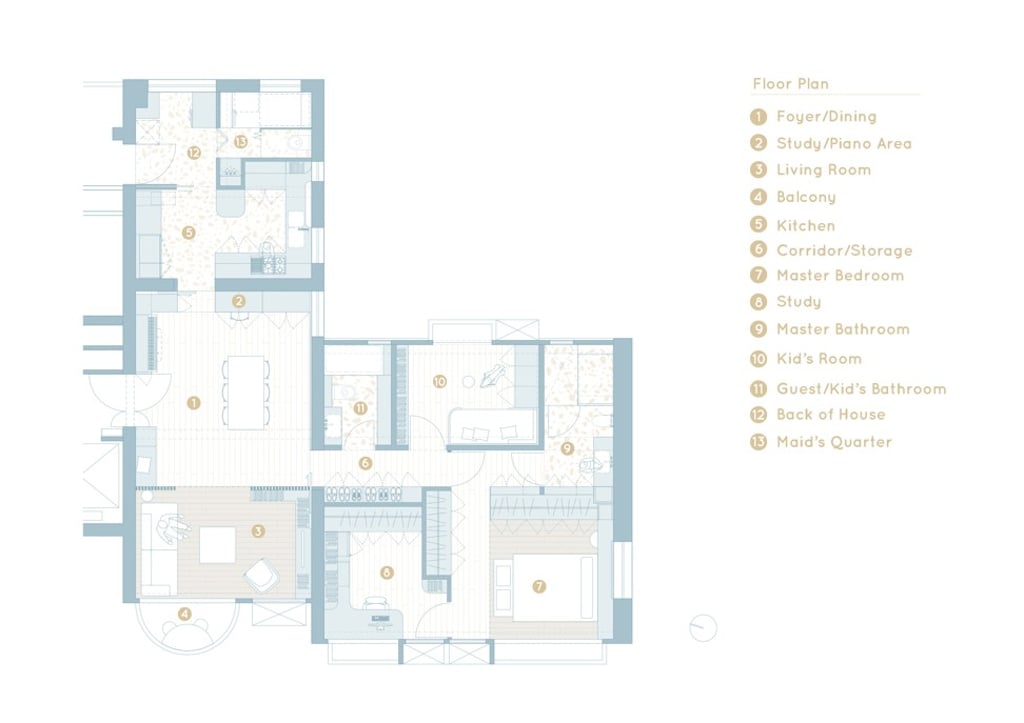 Asked to create a toddler-friendly home in an L-shaped, 1,200 sq ftflat overlooking Happy Valley Racecourse in a way that did not cramp the parents’ style, Lorène Faure and Kenny Kinugasa-Tsui, co-founders of interiors company Bean Buro, faced an unusual challenge.