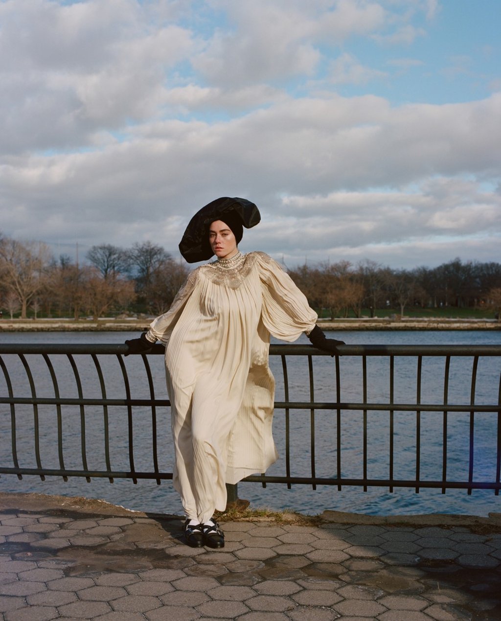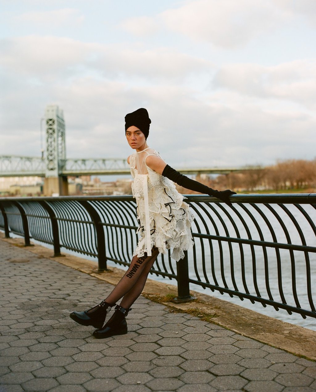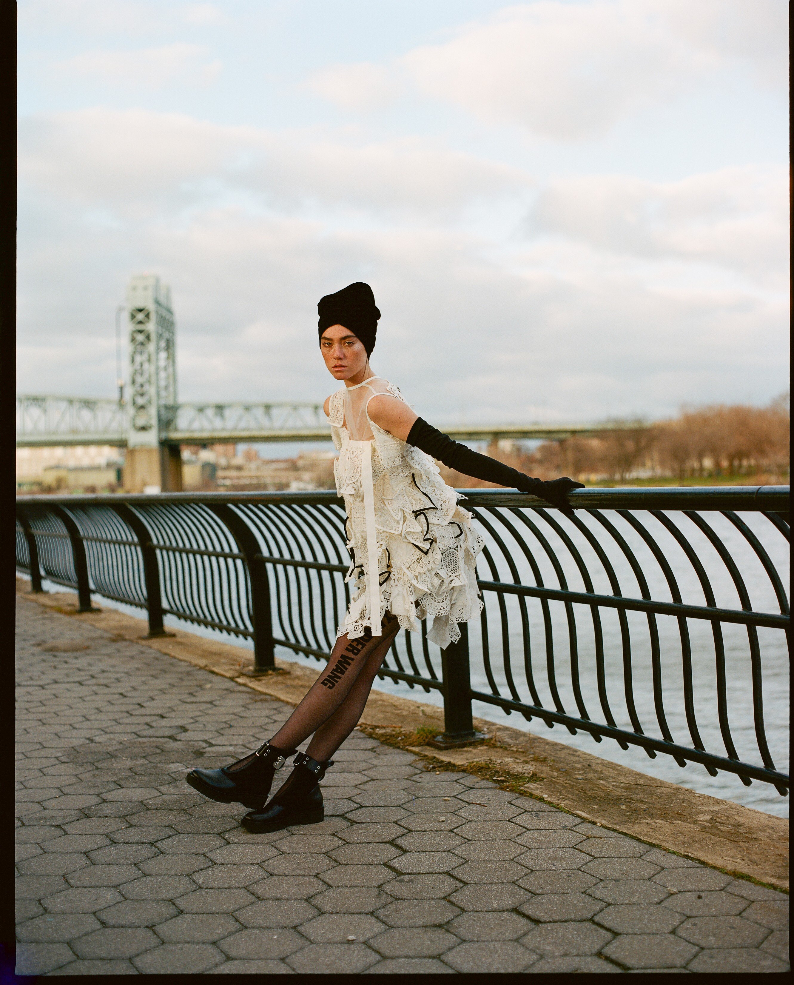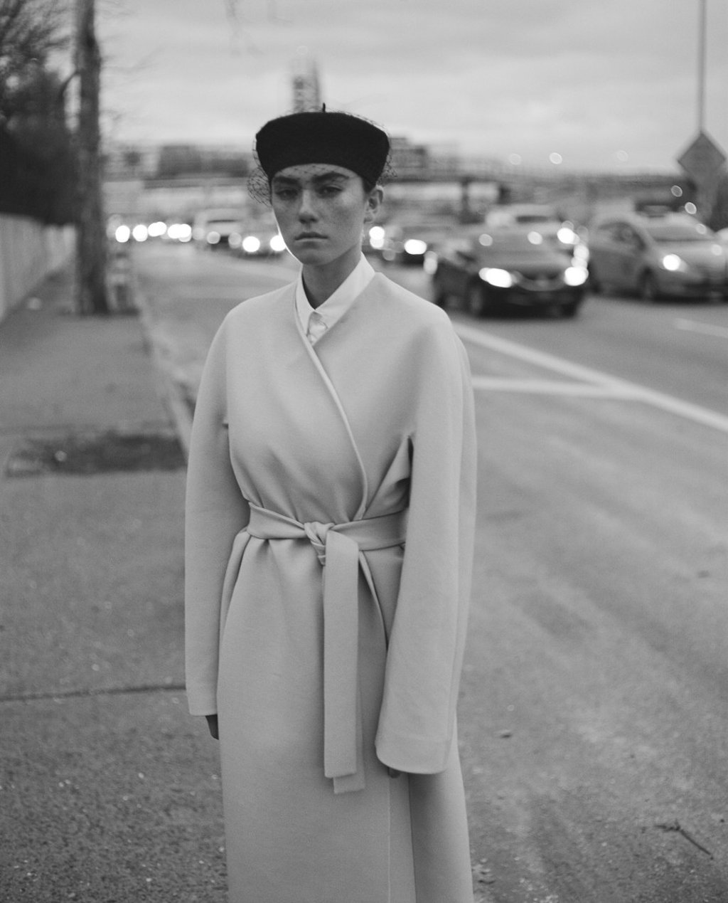 Wool coat by The Row. Shirt dress (HK$4,690) by 3.1 Phillip Lim. Beret with veil (HK$5,800) by Dior.
