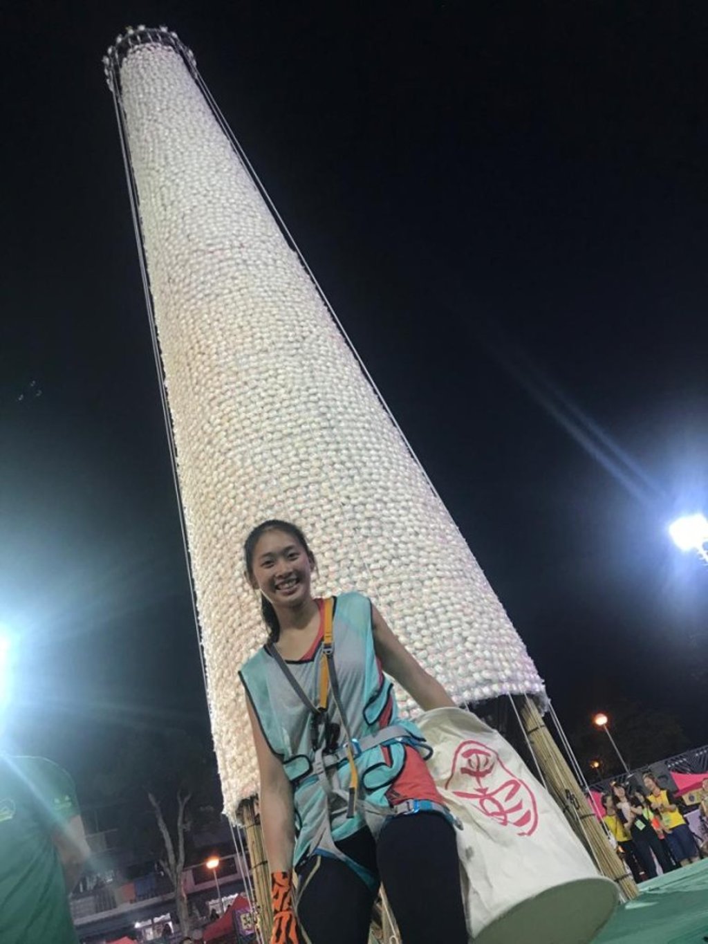Late at night on 12 May 2019, sleepy Cheung Chau is still wide awake. A lively crowd of onlookers jostles around the 14-metre bun tower at the centre of the soccer pitch of Pak Tai Temple Playground. Finally the gong strikes midnight, and the 12 finalists — nine men and three women — race up the towering structure. In the spotlight is Janet Kung Tsz-shan, the highest-scoring finalist and last year’s second-placer in the women’s division. In the blink of an eye, she snatches all the nine-point buns within reach, and knowing the rules of the game, makes sure both of her feet are firmly on the ground before three minutes are up. Relief! After seven years of scrambling, Janet finally bags the title of Queen of the Buns.