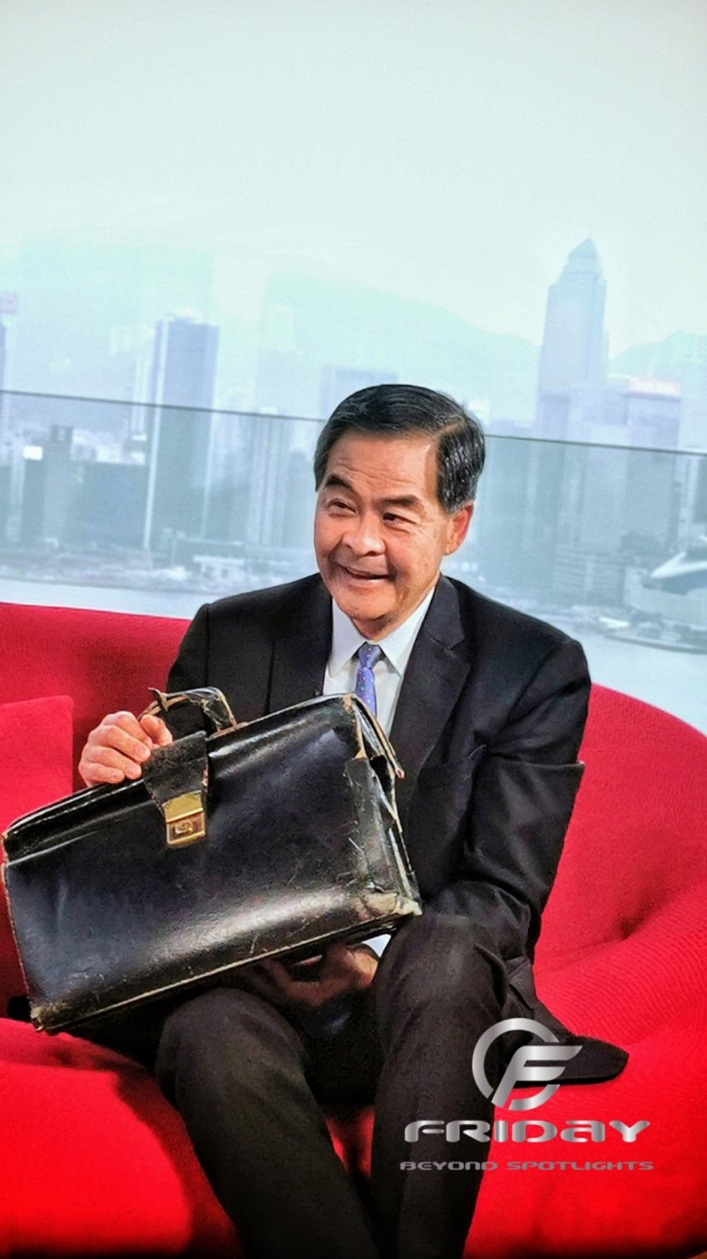 In the “beyond spotlights” segment in the second part of the show, Tsang invited Leung to reveal an object or an episode in his life which has special significance to him, and Leung took out his well-worn briefcase: “This is my school bag, which I bought during a Christmas sale from the otherwise quite expensive British department store in Bristol, and I paid £2.99 (about HK$32) for it. That was 1974. I had been using it as my school bag when I was in Bristol, and ever since I came back to Hong Kong I’ve been using it as my briefcase still in my study or in my office.”