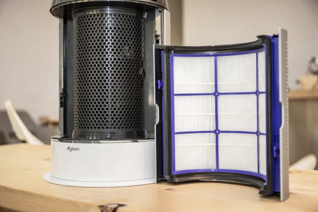 The most important assurance an effective air purifier should offer is that it securely captures and locks in the airborne pollutants and gases/odours so that they do not leak back out and return to indoor circulation. Dyson Pure Hot+Cool HP04 features 360-degree sealed filtration. The filtration system combines an activated carbon filter and a Glass HEPA filter. The carbon filer is engineered using a dense layer of carbon crystals treated with oxygen to make it more porous so that the carbon’s increased surface area effectively traps gases, including formaldehyde, benzene and NO₂. The Glass HEPA filter, made with 29 feet of borosilicate microfibres pleated over 200 times, captures and locks in 99.97% of microscopic allergens and pollutants as small as PM0.3.