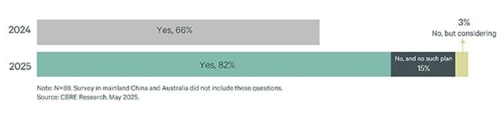 Several underlying drivers are revealed by the survey. Global Capability Centre (GCC)‑heavy markets such as India play an important role in occupiers’ portfolio strategies, while in Japan, companies are expanding again after consolidating space during the pandemic, supported by steady economic growth.