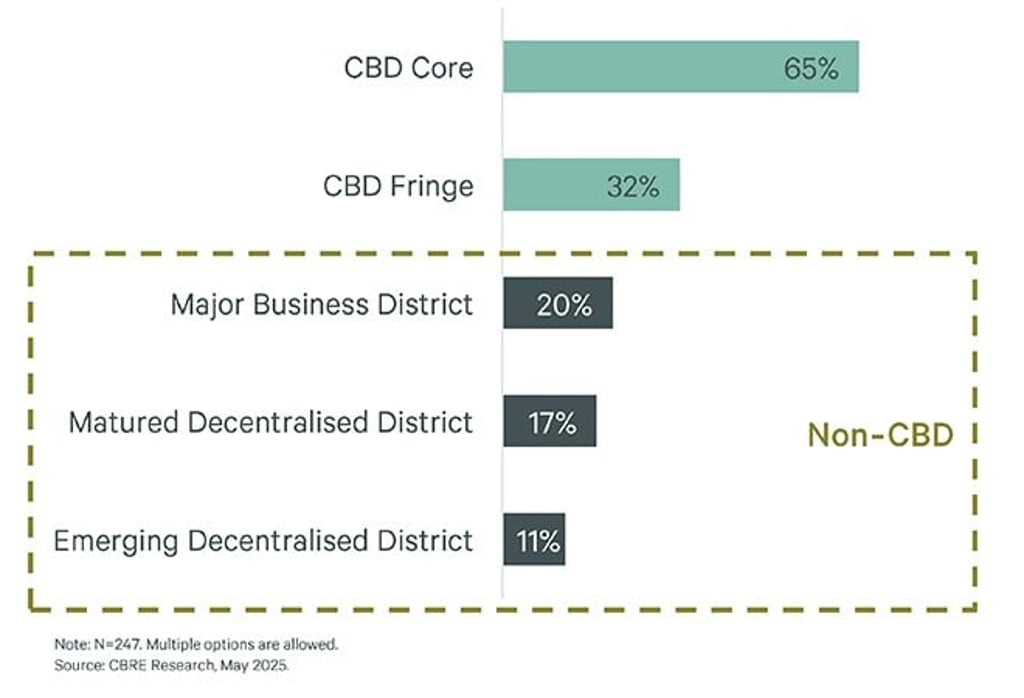 Despite the preference among most occupiers for CBD areas, tight vacancy rates in prime locations are creating a bifurcated leasing market. Availability is primarily concentrated in non-CBD areas, making it more challenging for companies to secure high-quality CBD office space.