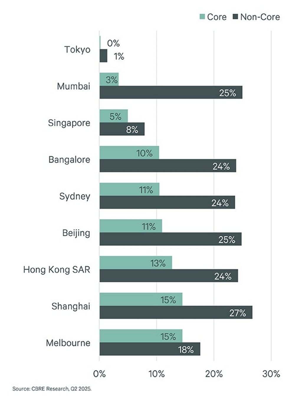 This trend is not limited to Hong Kong. In Tokyo, low vacancy in prime districts has pushed pre-commitment activity to record highs. In India, GCCs are driving strong demand for next-generation business parks.