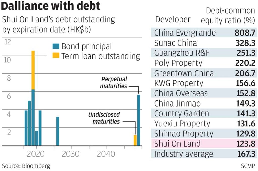 In its 2016 interim report, Shui On reported that its gearing ratio had dropped 12 percentage points to 75 per cent from the previous year.