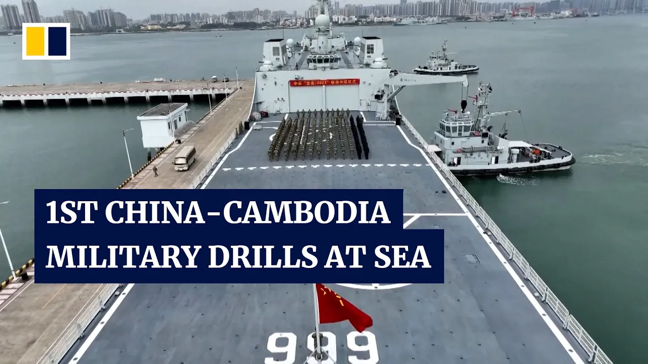 China and Cambodia hold their first maritime military exercises, called ‘Golden Dragon, from March 20 to April 8. China’s amphibious dock landing ship, Jinggangshan, is working with Royal Cambodian Navy vessels for training in working together and communicating better. More than 3,000 Cambodian sailors and personnel from the Chinese army and navy are taking part.